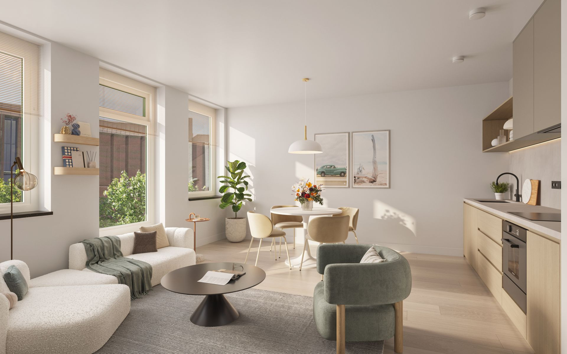 De woningen zijn geschikt voor starters, gezinnen en senioren. Elke woning heeft een eigen terras of loggia en er zijn twee geweldige dakterrassen met uitzicht over de levendige omgeving.