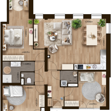 Kijk mee in de plattegronden van de verschillende appartementen. Er is een keuze uit twee-, drie- of vierkamerappartementen van 55 m2 tot en met 105 m2. Vanzelfsprekend zijn deze moderne woningen ook qua energievoorziening geheel eigentijds. Dat betekent dat ieder appartement is voorzien van vloerverwarming, er extra energie wordt opgewekt door zonnepanelen en het gehele complex wordt verwarmd door een warmtepomp.